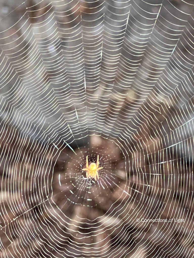 When I looked closely and stared at the incredible web that little yellow spider wove, I saw sections of the web that were a little asymmetrical and not strictly in line with other threads. I noticed a few spots where two threads that were separate in other sections of the web seemed to come together in another. What really stuck me, though, was the beauty and interconnectedness of the web as a whole. It was incredibly beautiful, fully functional, and perfectly imperfect. I am grateful for the little yellow spider reminding me about what is so much more valuable than perfection.